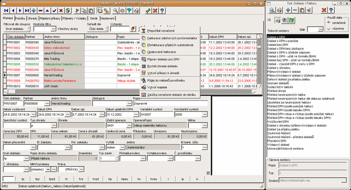 Doklady lze tisknout přímo nebo exportovat do Excelu či OpenOffice a poslat pak emailem. V systému lze vytvářet zahraniční doklady v cizích měnách a jazycích. Systém podporuje zpracování DPH včetně různých způsobů zaokrouhlování a výpočtu DPH dle platné legislativy, zahraničních dokladů, zpracování zálohových faktur, dobropisů, daňových dokladů plateb apod. Samozřejmostí jsou upgrady systému s ohledem na měnící se stav daňových a účetních zákonů.