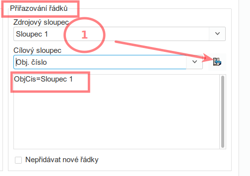 - a postupně vybírámě zdrojové a cílove sloupce a tlačítkem (3) tvoříme importovací pravidla