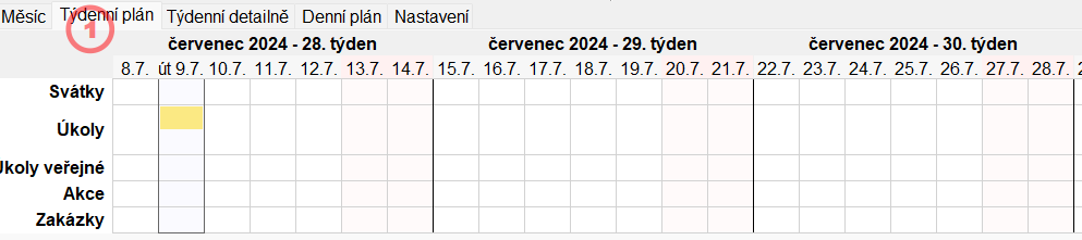 - otevře se v hlavním start menu Úkoly/dokumenty - Plánovací kalendář