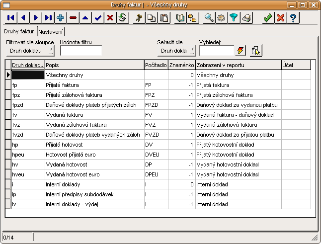 | 100 | 0 | Druh dokladu | IDFDruh | String(8) | Zkratka druhu dokladu |