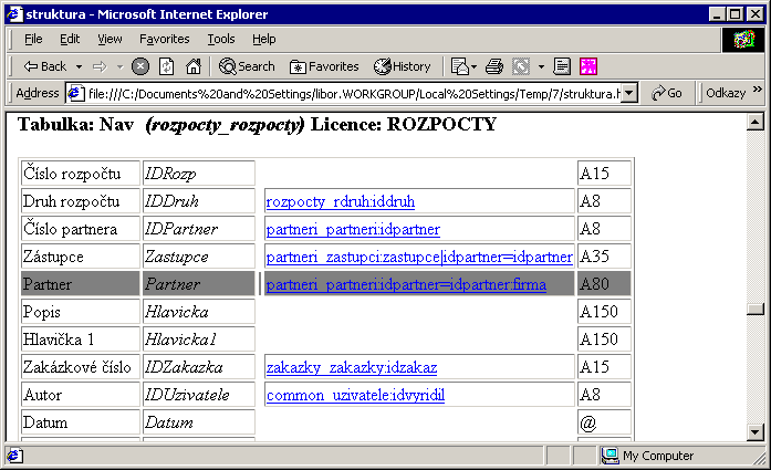 Zobrazí se HTML dokument, se seznamem všech tabulek OBISu a jejich strukturou.