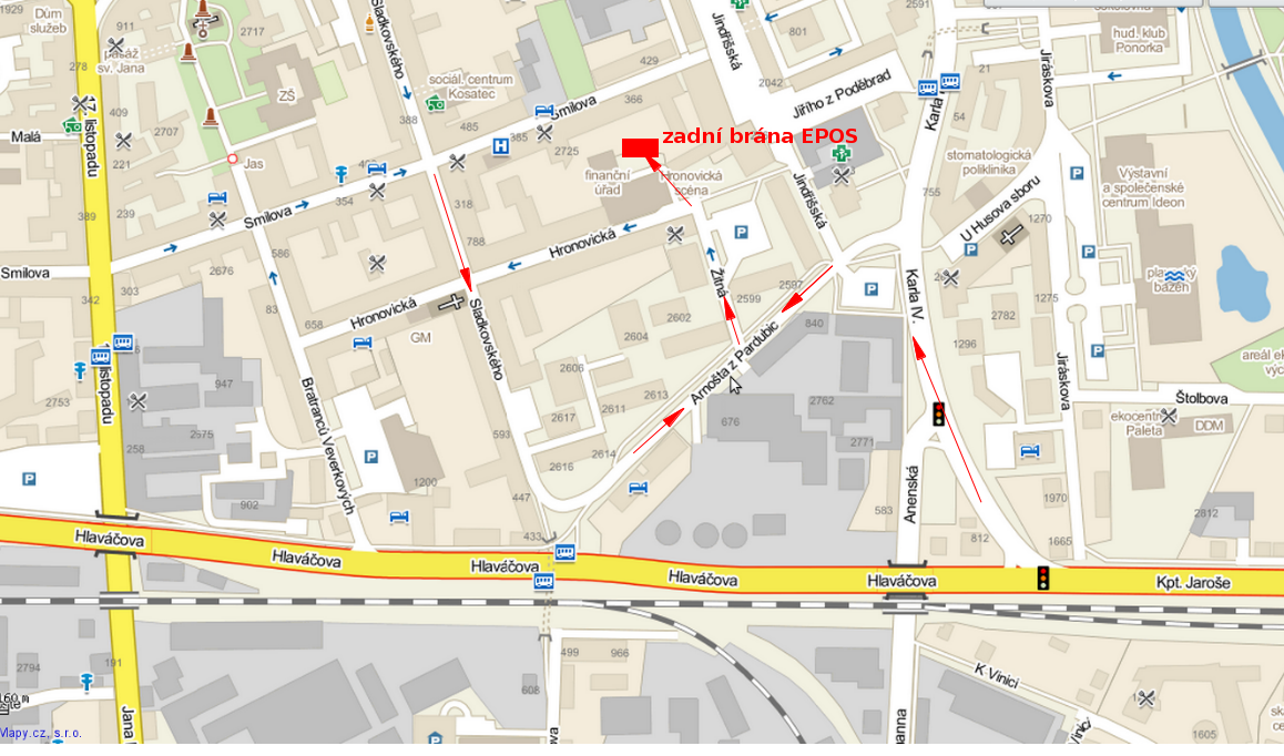 Parkování lze také telefonicky zajistit na našem vyhraženém parkovišti, příjezd zadní příjezdovou branou viz. následující mapka: